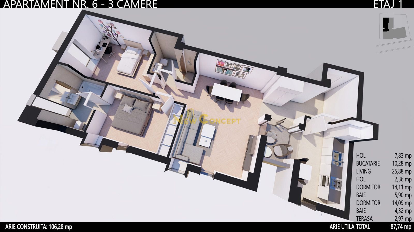 - Suprafata utila: 87 mp