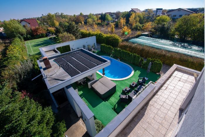 Neoland Real Plus ofera oportunitatea achizitie unei vile supebe situata in localitatea Branesti, la intrare in localitate in partea stanga, zona linistita, nepoluata. Vila realizata de un cunoscut si apreciat ahitect argentinian, finisaje de cea mai inalta calitate, inaltimi generoase, volumetrie buna, arhitectura moderna/futurista. In exterior avem piscina, bucatarie acoperita, utilata, teren de tenis profesionist. Suprafata teren 2000 mp. Pret : 649.000 Euro discutabil
