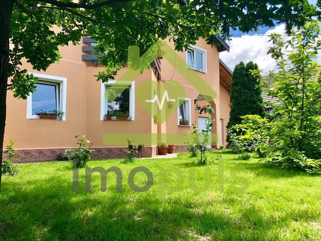 Gradina este amenajata cu plante decorative, pomi fructiferi, gazon. Deasupra de garaj este un apartament de 40mp, camara. In curte este o bucatarie de vara, portcar pt 2 masini, panouri fotovoltaice, trotuar pavat.