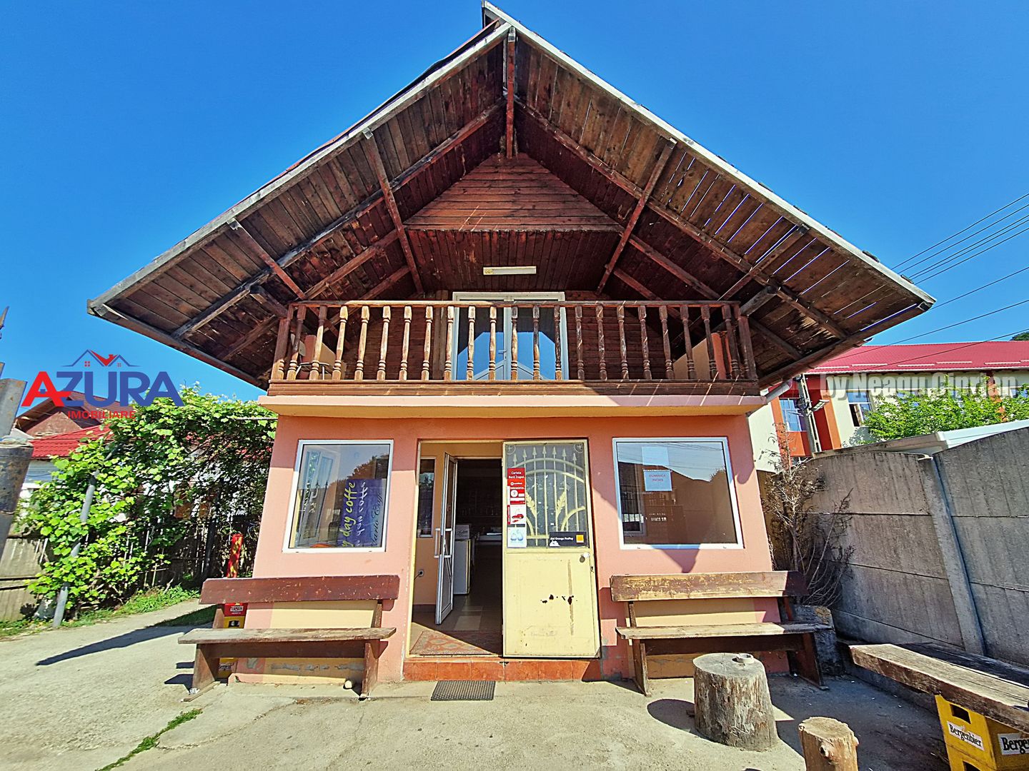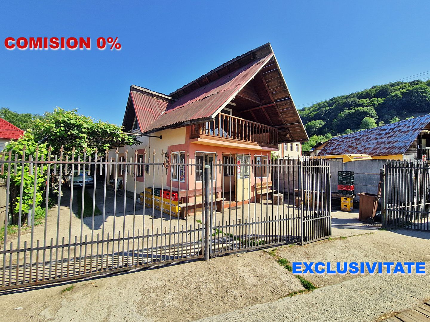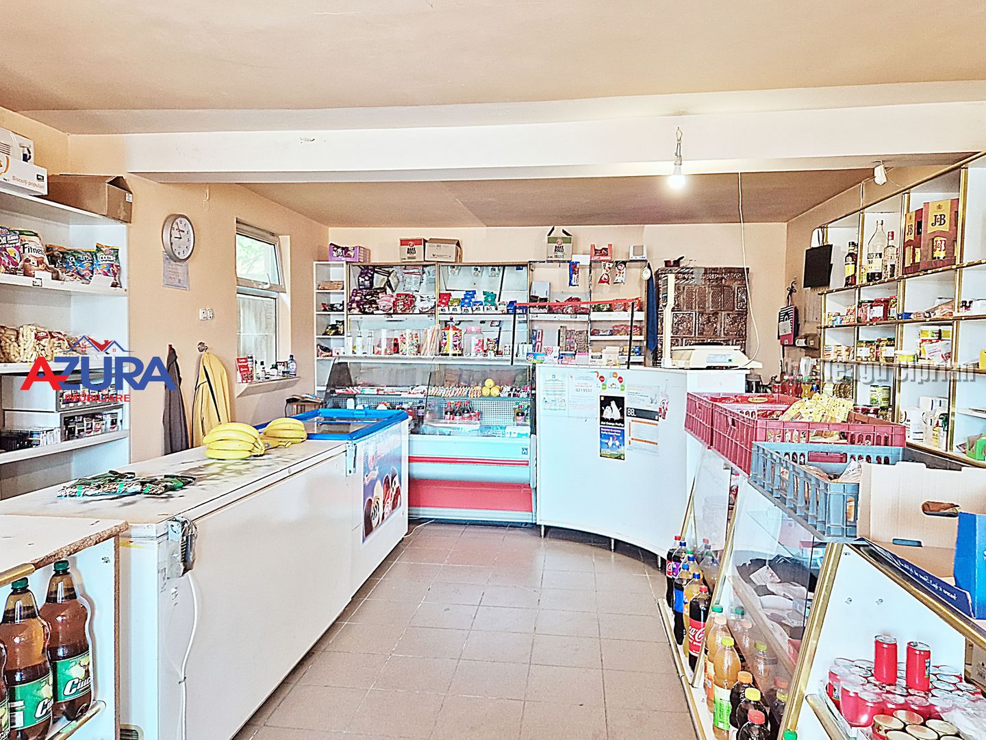 Accesul se realizeaza in mod direct din strada principala, care este asfaltata, si cu locuri de parcare in apropriere. Imobilul este total functional si poate fi predat ca o afacere (inclusiv mobilier si echipamente specifice comertului si stoc de marfa existent, separat), sau pentru modificare in utilizare rezidentiala (casa unifamiliala).
