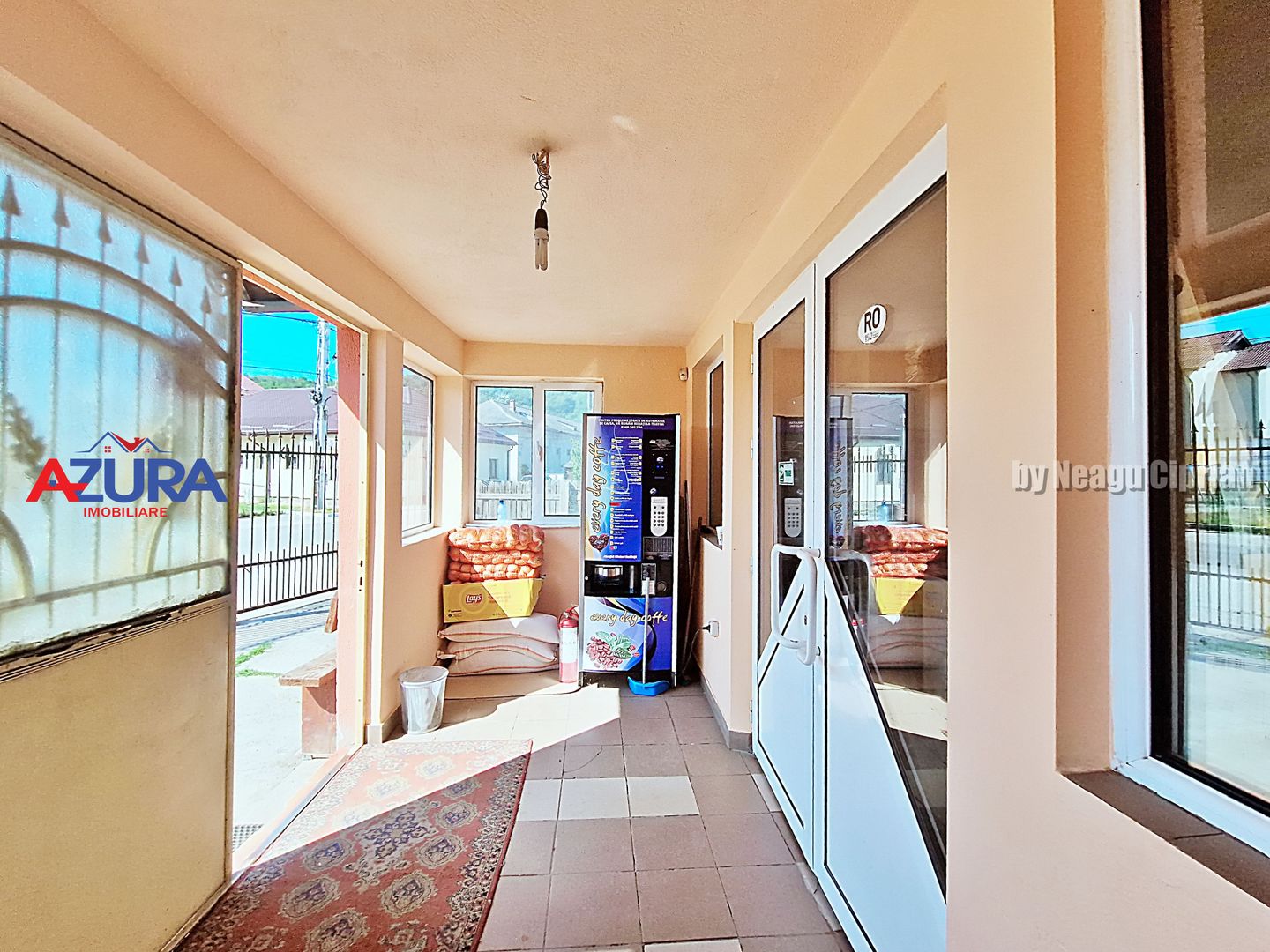 Cladirea principala este compartimentata in mod preponderent open-space, fiind gandita de la inceput drept Spatiu Comercial, aceasta utilizare fiind cea recomandata si pentru viitor, existand deja Vad Comercial creat. Vecinatatea sa directa cu Scoala Generala reprezinta un atuu de necontestat pentru reusita afacerii!