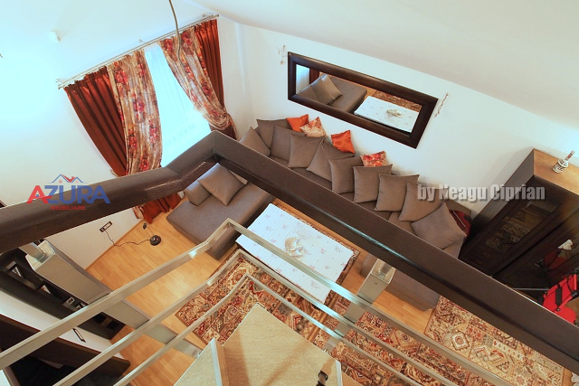La parter aveti un Living mare si inalt (perfect pentru Pomul de Craciun de 4m inaltime ;-), baie, un dormitor/birou si bucataria. Si Da! bucataria are iesire catre terasa acoperita din spatele casei. Foarte comod pentru relaxarea de seara :-) La etaj va bucurati de cele doua dormitoare mari (fiecare cu propriul balcon), si o baie cu finisaje si dotari superioare.