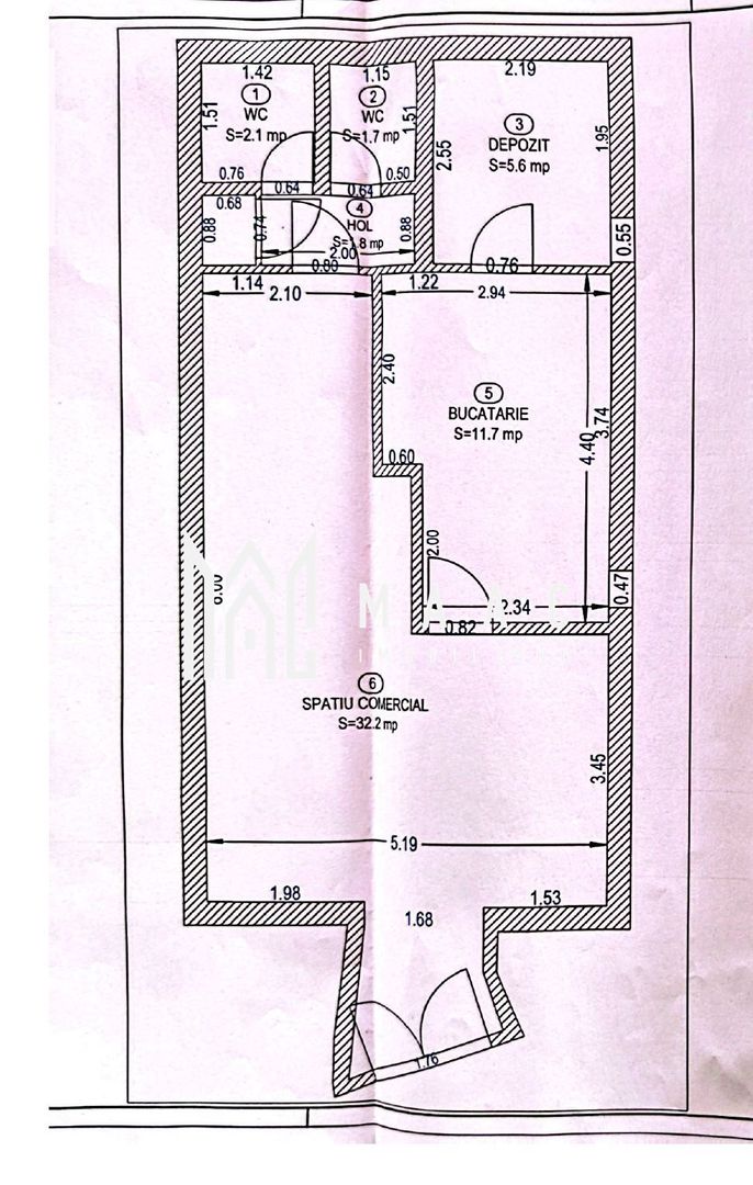 -2 grupuri sanitare, totalizând 6 mp utili