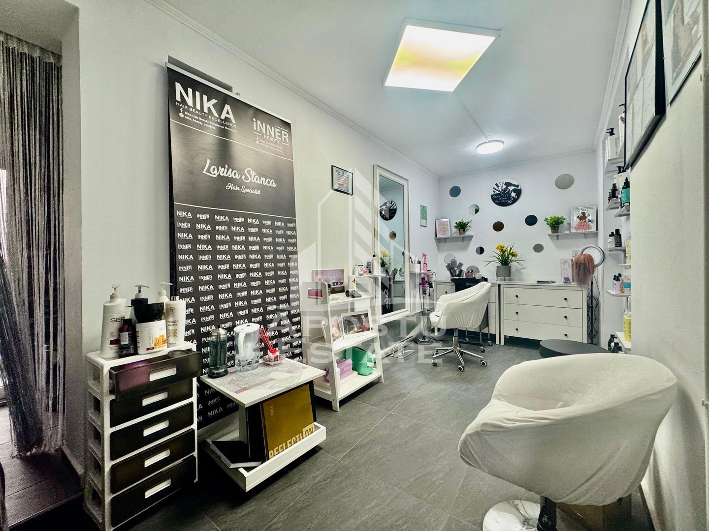 Fiecare incapere este luminoasa si bine proportionata, potrivita pentru diverse servicii de infrumusetare: coafor, manichiura, cosmetica sau masaj. Finisajele sunt moderne, iar toate utilitatile sunt disponibile si functionale.