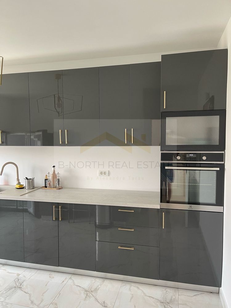 Bucătărie închisă, mobilată și utilată (frigider LG Side by Side, cuptor și plită electrică, mașină de spălat vase Electrolux/Whirlpool – în garanție)