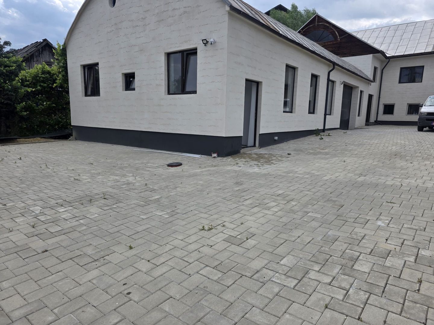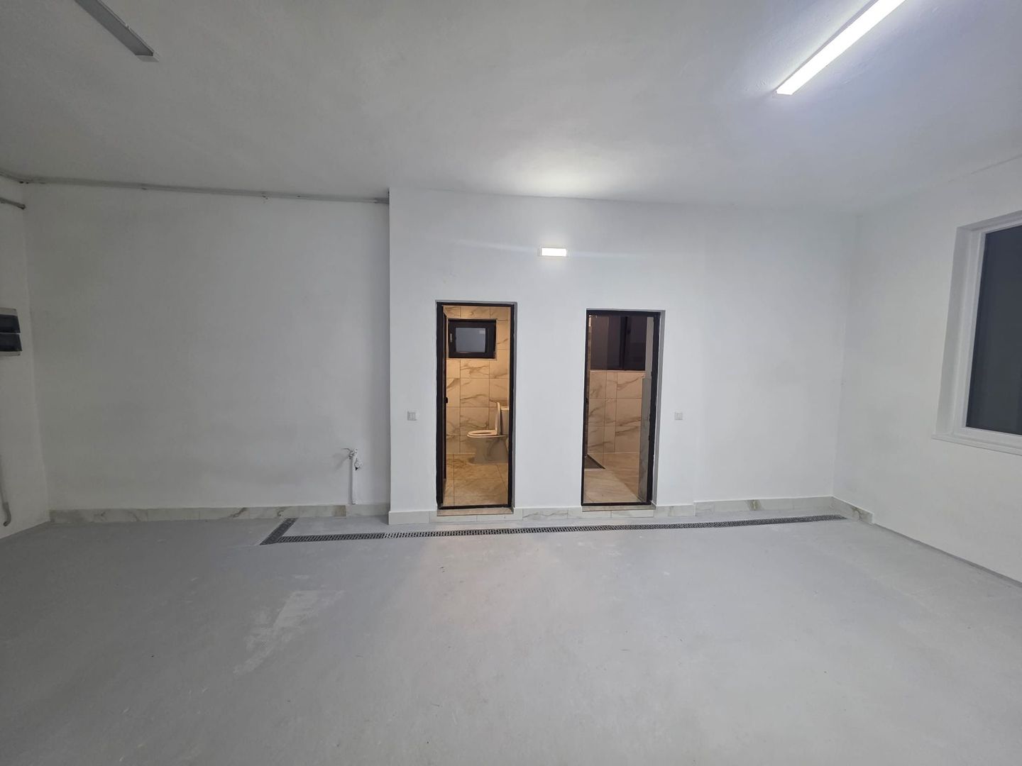 -1 spatiu tip open space /hala ,1 birou , 1 camera pentru depozitare , baie , vestiar cu dus ,poarta electrica pentru acces auto daca este cazul , 300 mp curte pavata , imprejmuita cu gard si securizata ; dispune de curent trifazic, apa si canalizare .