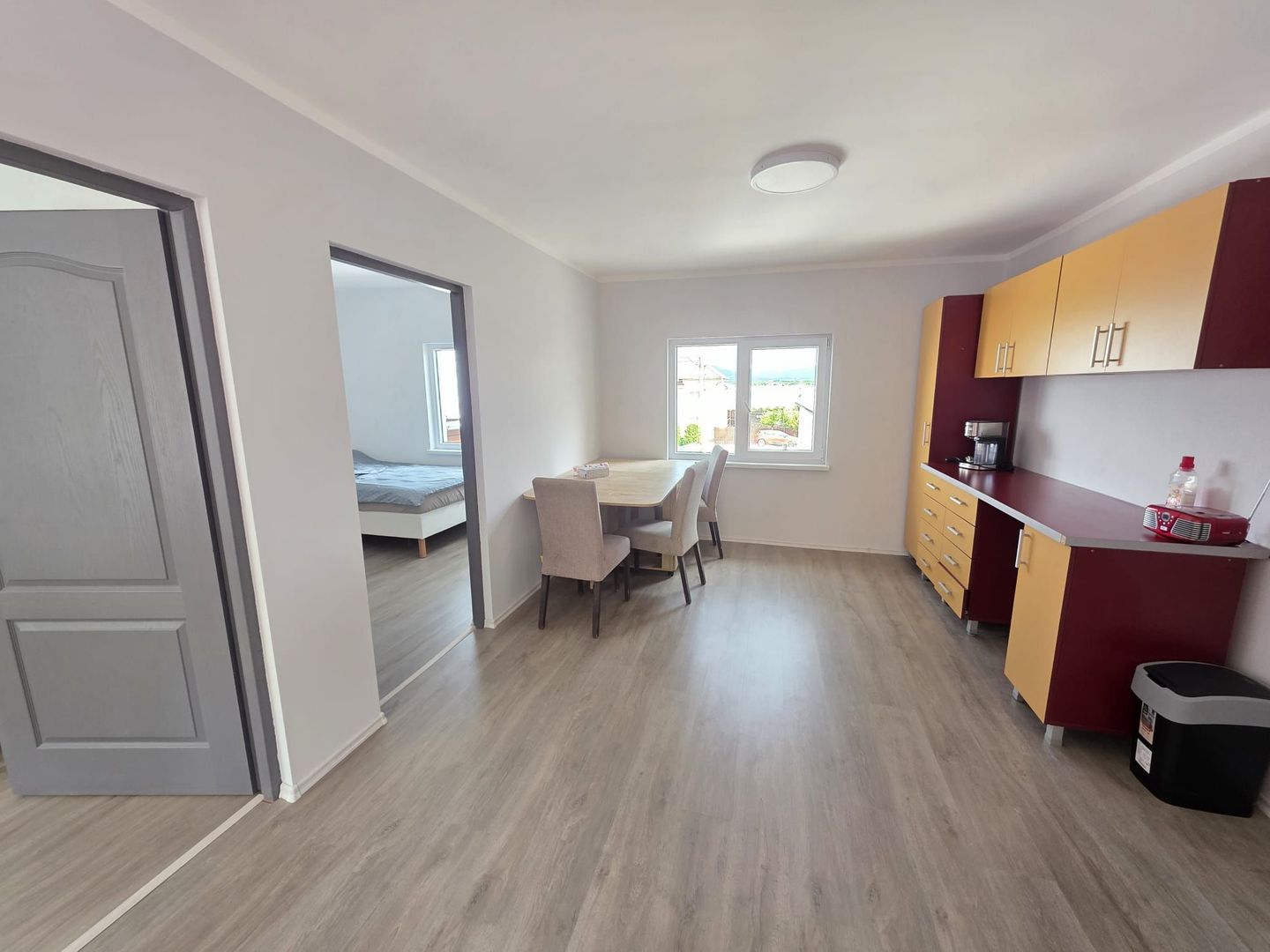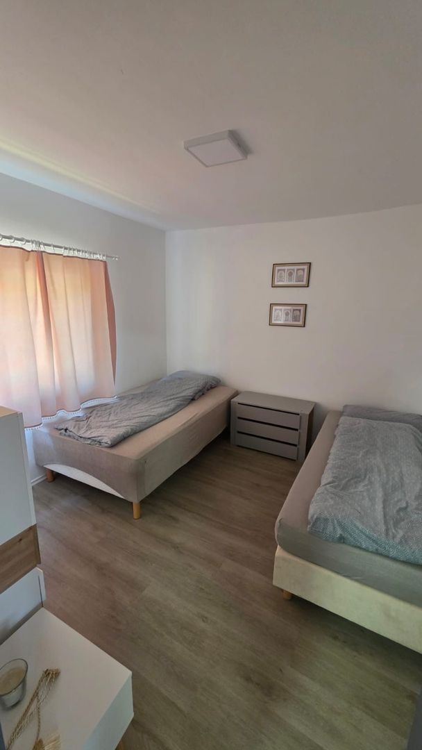la etaj – 2 apartamente complet mobilate si utilate , fiecare in suprafata de 50 mp .Fiecare apartament dipsune de baie proprie .