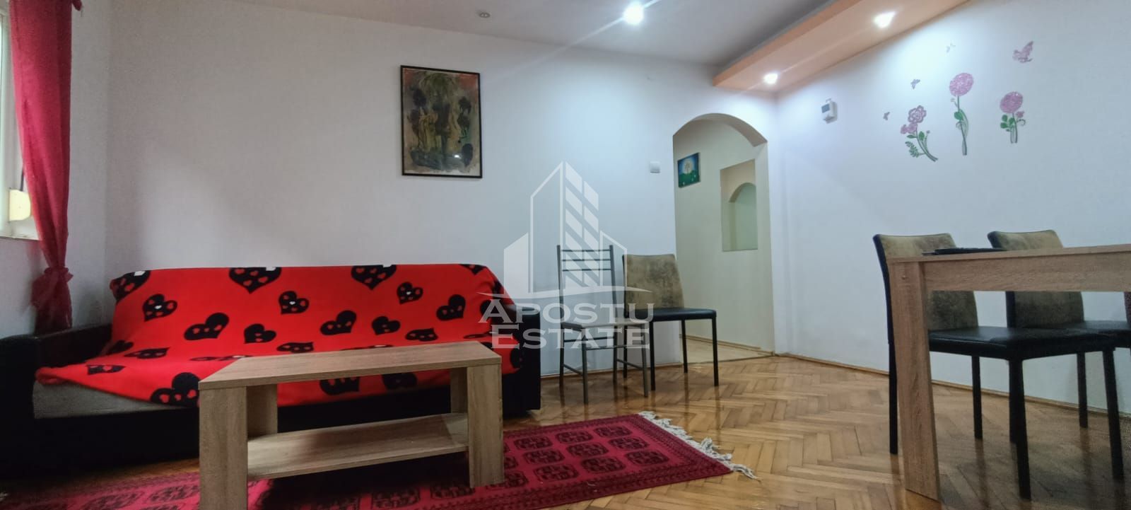 Agentia imobiliara APOSTU ESTATE va ofera spre inchiriere un apartament semidecomandat cu 2 camere, situat la parter/4 etaje, izolat interior, cu centrala propie, situat in zona Girocului, o zona bine conectata a orasului. Apartamentul se preteaza pentru cupluri, persoane singure, familii la inceput de drum. Nu se accepta animale de companie de catre proprietar.