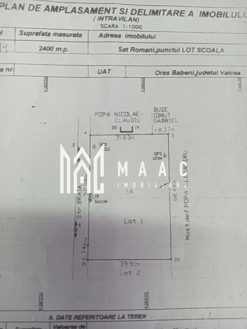 MAAC Imobiliare are într-adevăr în portofoliu un teren intravilan de 2.400 mp, situat la strada Brâii, în orașul Băbeni, județul Vâlcea.
