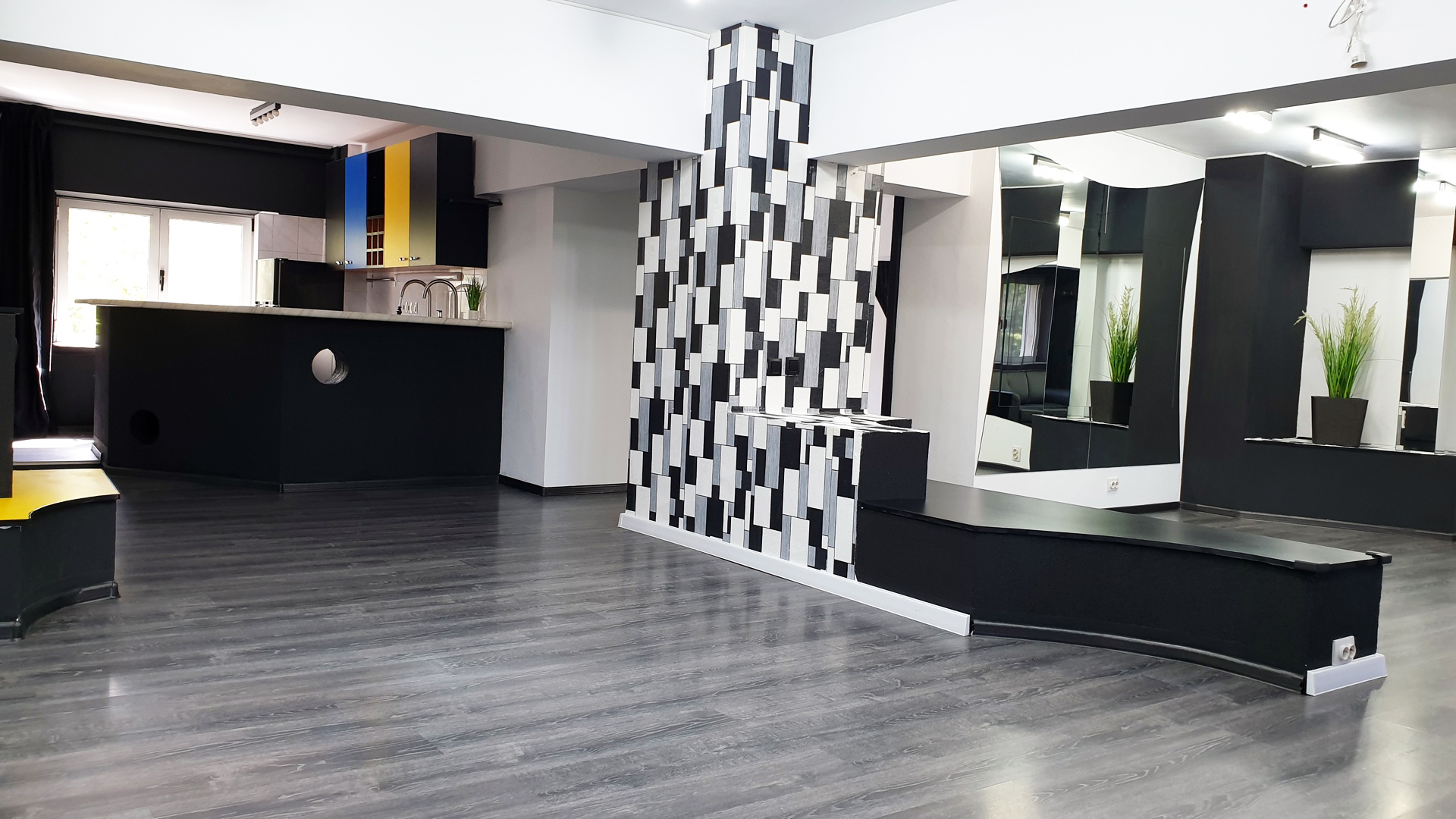 Oglinzile aplicate in mod generos – ca exercitiu vizual de imaginatie – sporesc senzatia de spatiu si aduc dinamism functional, expansiunea vizuala a spatiului.